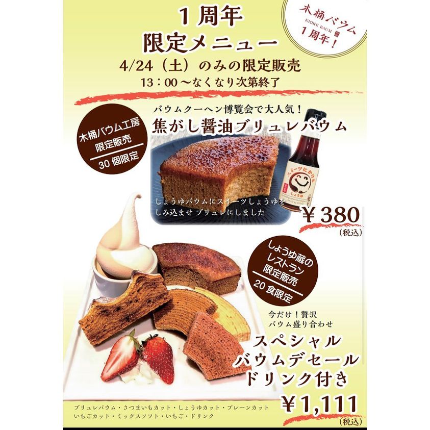 さらに、しょうゆ蔵のレストランでは『スペシャルバウムデセール(ドリンク付)』を販売!