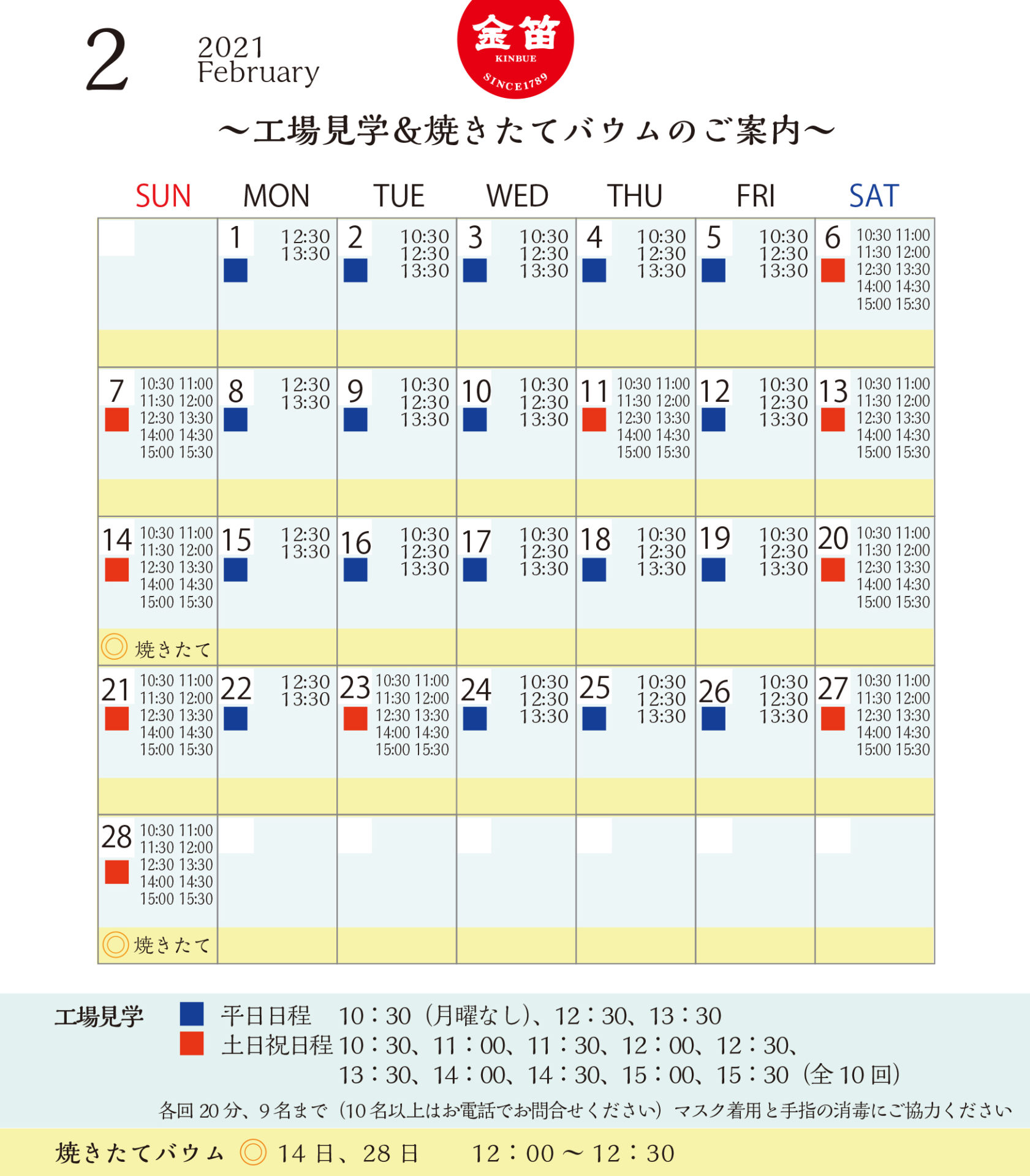 金笛しょうゆパークでは、2月も工場見学、焼きたてバウムを開催します!