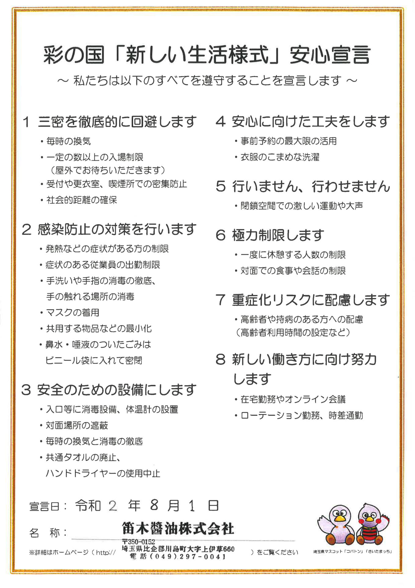 ★金笛では彩の国「新しい生活様式」安心宣言をしています★