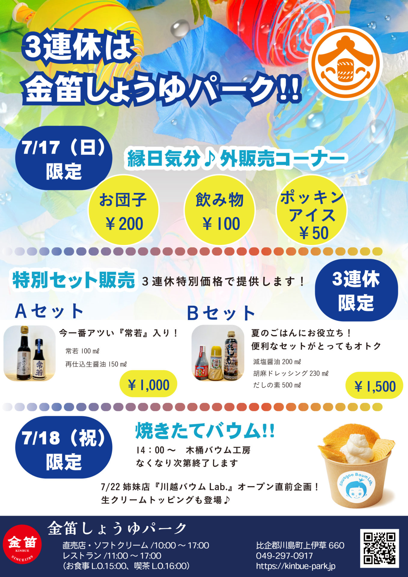 連休はぜひ金笛しょうゆパークにおでかけください!!