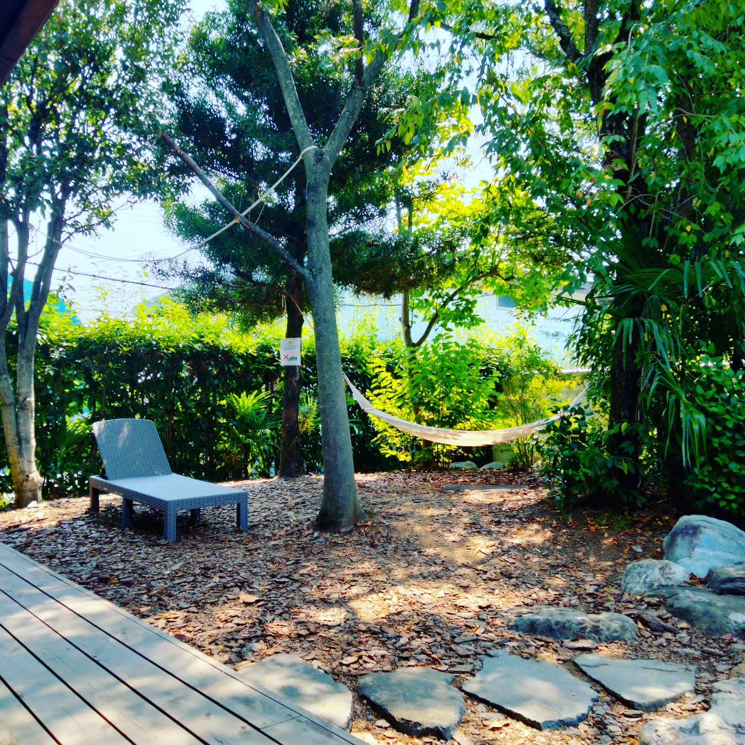 金笛しょうゆパークののんびり広場に避暑地のような涼やかなデイベッド、ご用意しました!