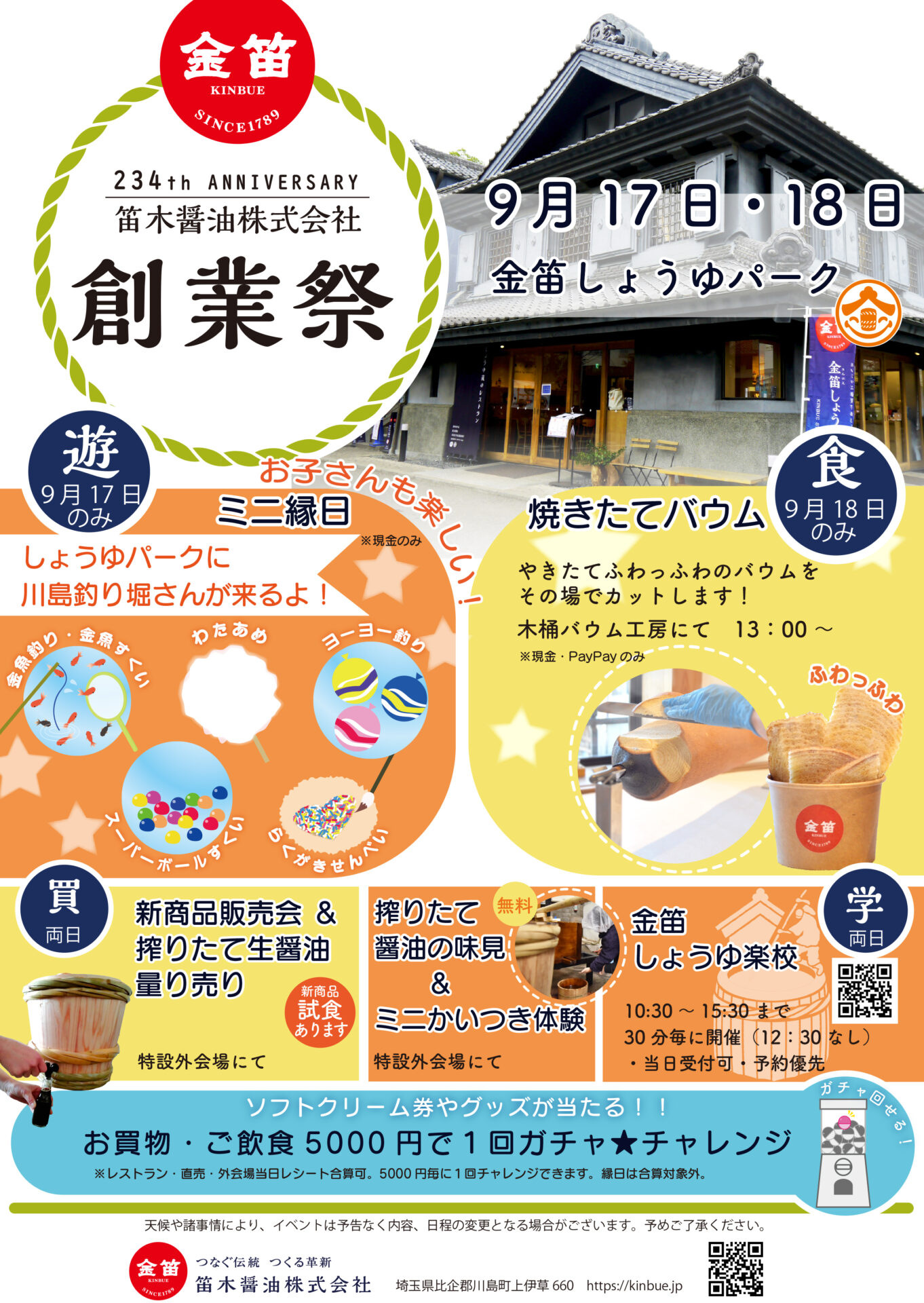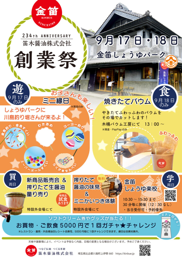 9月17日(日)、18日(月・祝)で笛木醤油創業祭を開催いたします!
