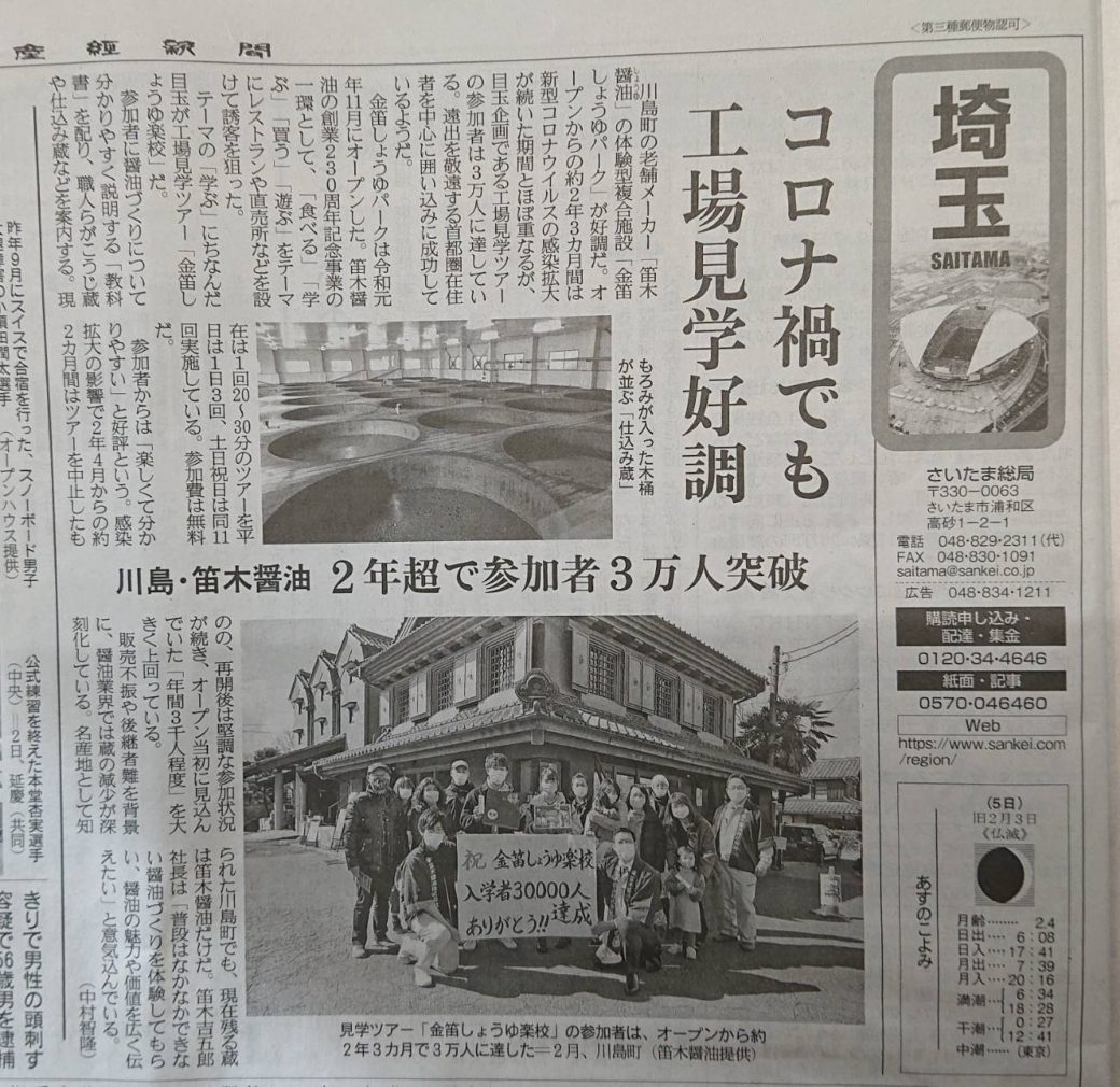 金笛しょうゆ楽校入学者30000人達成!産経新聞でもご紹介いただきました!