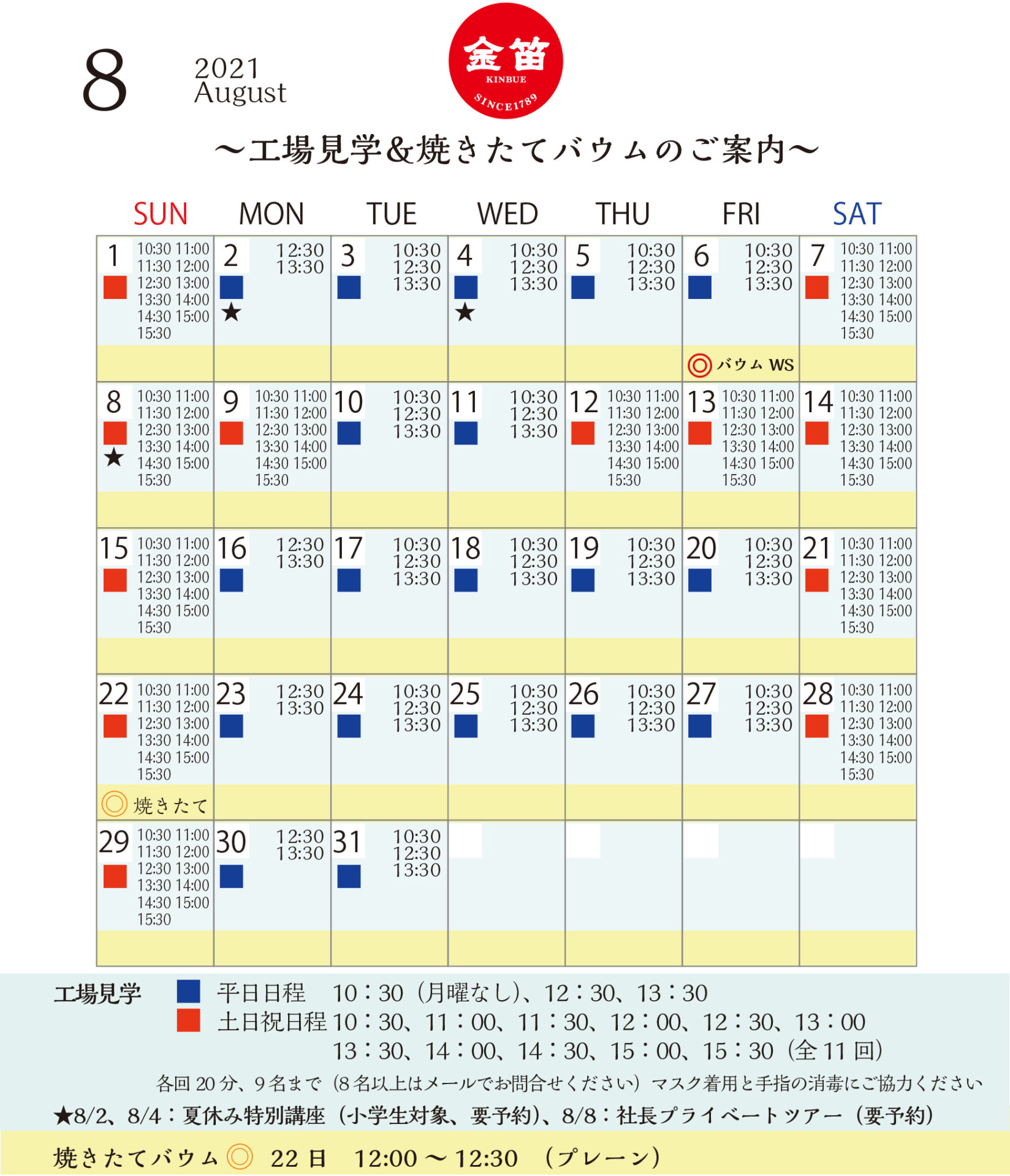 ※バウムWS、工場見学夏休み特別講座・社長プライベートツアーは予約受付終了しております。