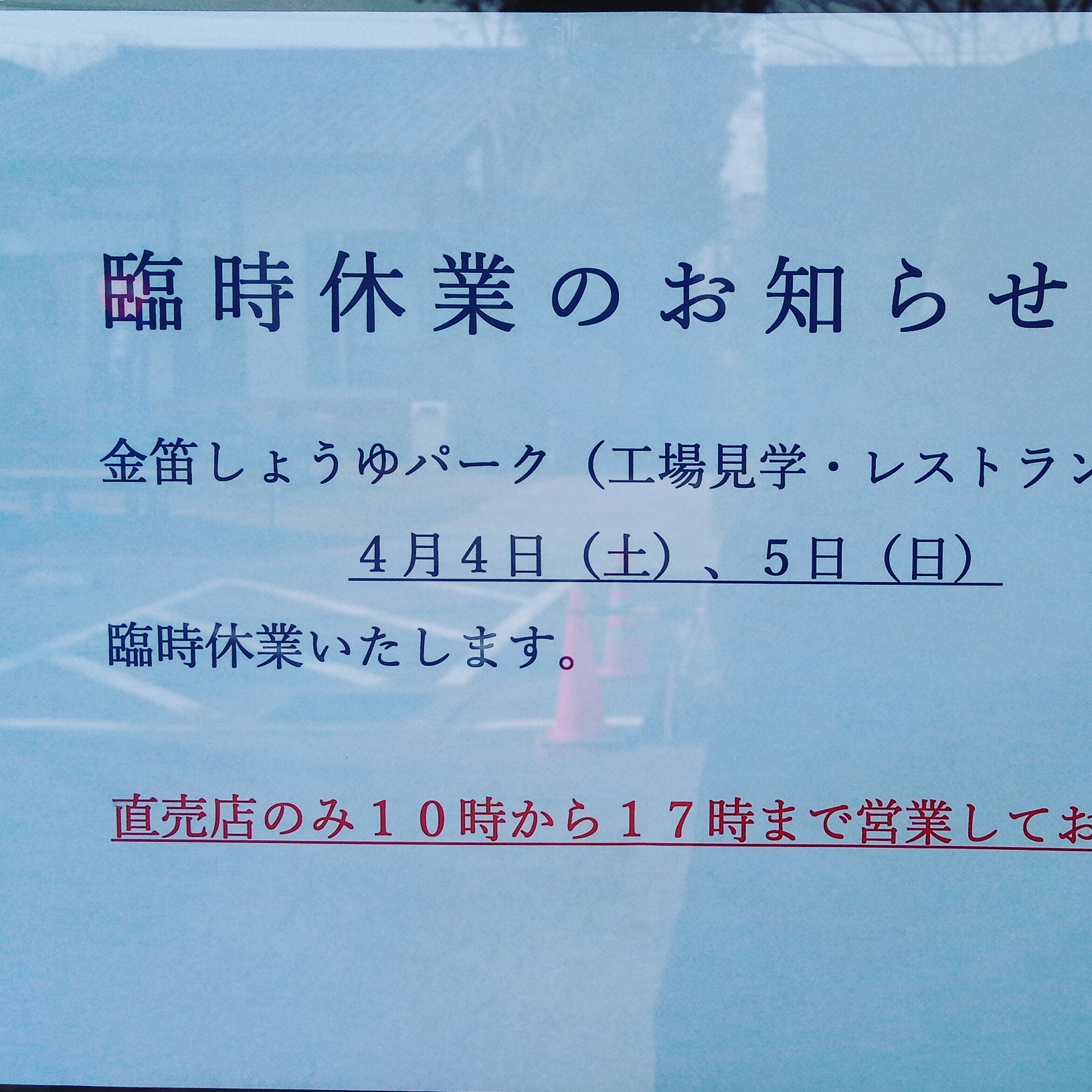 大変急なお知らせとなりますが、本日18日、しょうゆパーク直売店&テイクアウトも臨時休業します。
