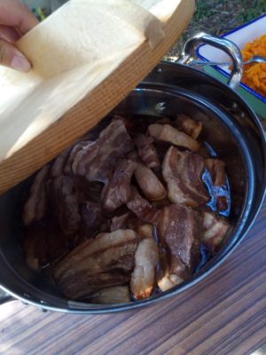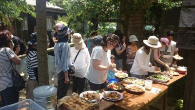 種まき後、横田さんの作った美味しいお米を 羽釜で炊いたり、笛木醤油の角煮など 美味しいご飯が食べられます。