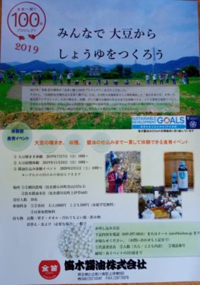 未来へ繋ぐ100年プロジェクト2019‼ 【みんなで大豆からしょうゆをつくろう】