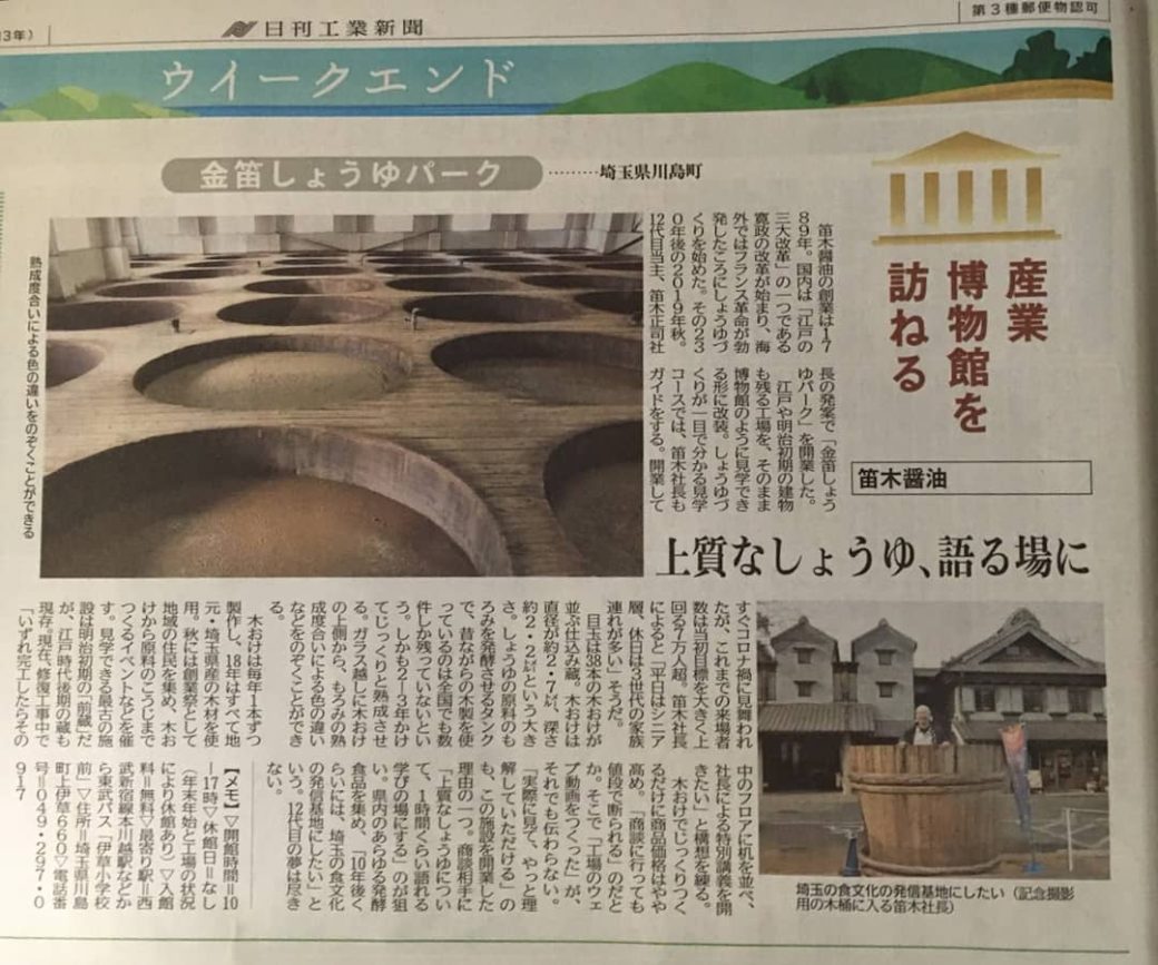 日刊工業新聞に金笛しょうゆパークをご紹介いただきました!