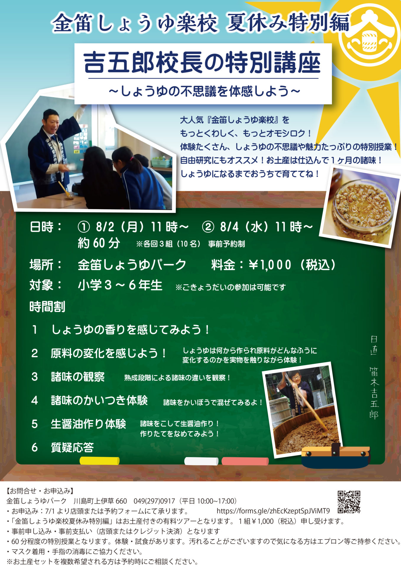 【募集!】金笛しょうゆ楽校夏休み特別講座