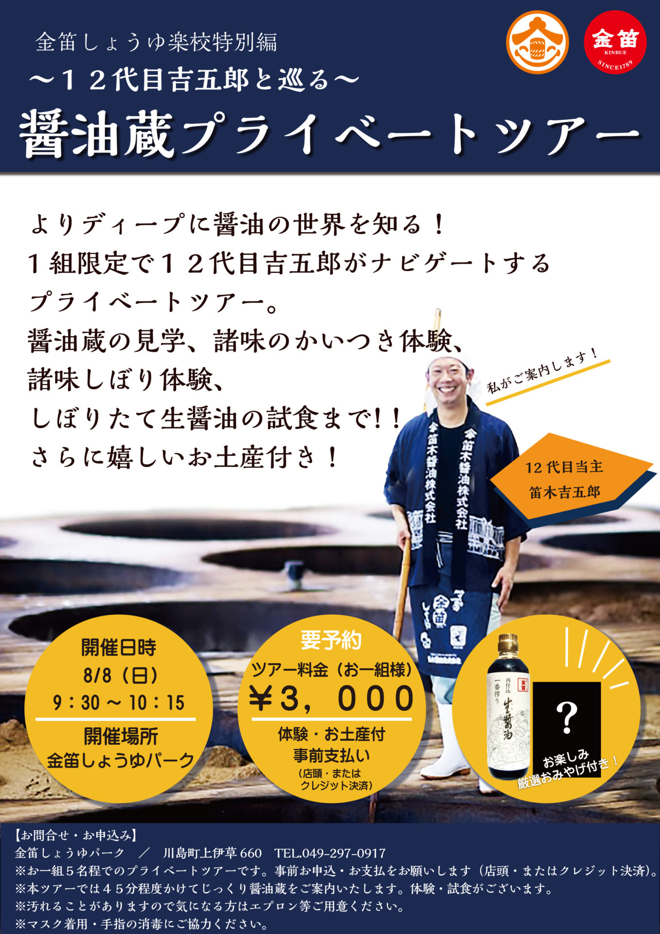 前回好評だった「12代目吉五郎と巡る醤油蔵プライベートツアー」8月開催決定です!