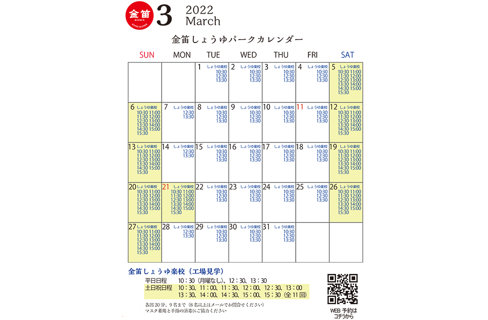 3月も毎日元気に金笛しょうゆ楽校(工場見学)を開催します!