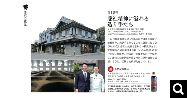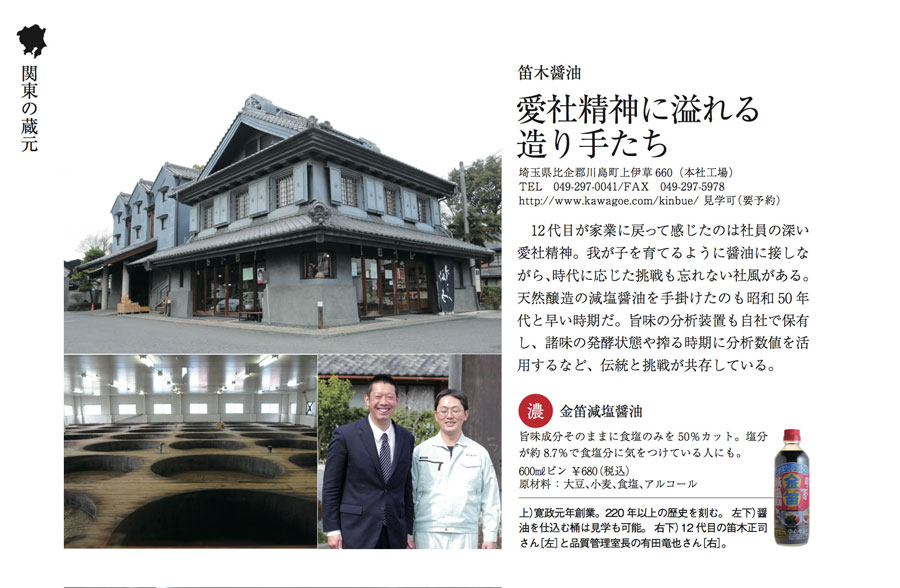 また独自の技術を用い、旨味成分をそのままで食塩のみを50%カットした「金笛減塩醤油」、二度の醸造を行い、手間をかけた「金笛再仕込醤油」も昨今好評を得ています。
