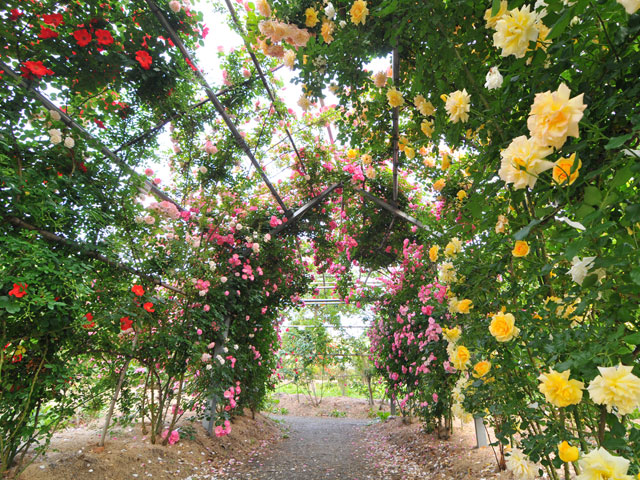 The small diameter of the rose consisting of about 480 tsurubaras and about 60 varieties was approved as “Japan’s longest rose tunnel” with a total length of 340.5 meters.
