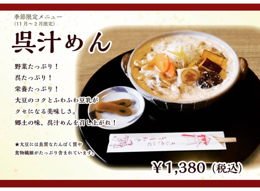 あつあつの呉汁めんは、2月末までのメニューとなります。