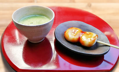 中にあんこがはいったお団子。たれに金笛醤油を使っています!