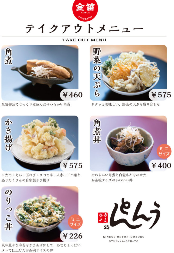 川越店&うんとん処春夏秋冬ではテイクアウトをはじめます。