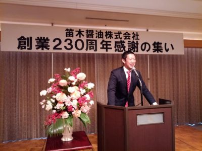 「父が創業200年の時が、笛木醤油にとっての第2創業期、そして230周年の今、11月の金笛しょうゆパークに向けて、第3創業の時を迎えています!大変なことがたくさんあります。けれどどうか力を合わせて頑張りましょう!!」