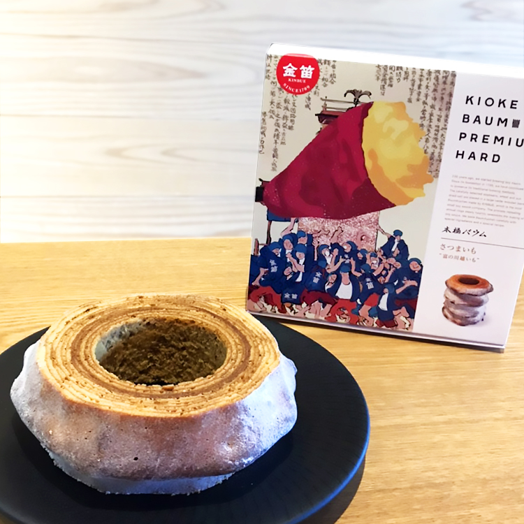 富の川越芋をたっぷり使用。低温でじっくりと焼き上げる、ずっしりしっとりとしたセミハード食感のバウムクーヘンです。