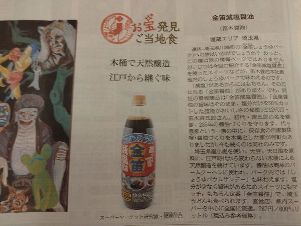 朝日新聞さん誌面にて、弊社40年以上のロングセラー【金笛 減塩醤油】が紹介されました!
