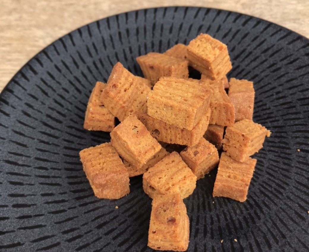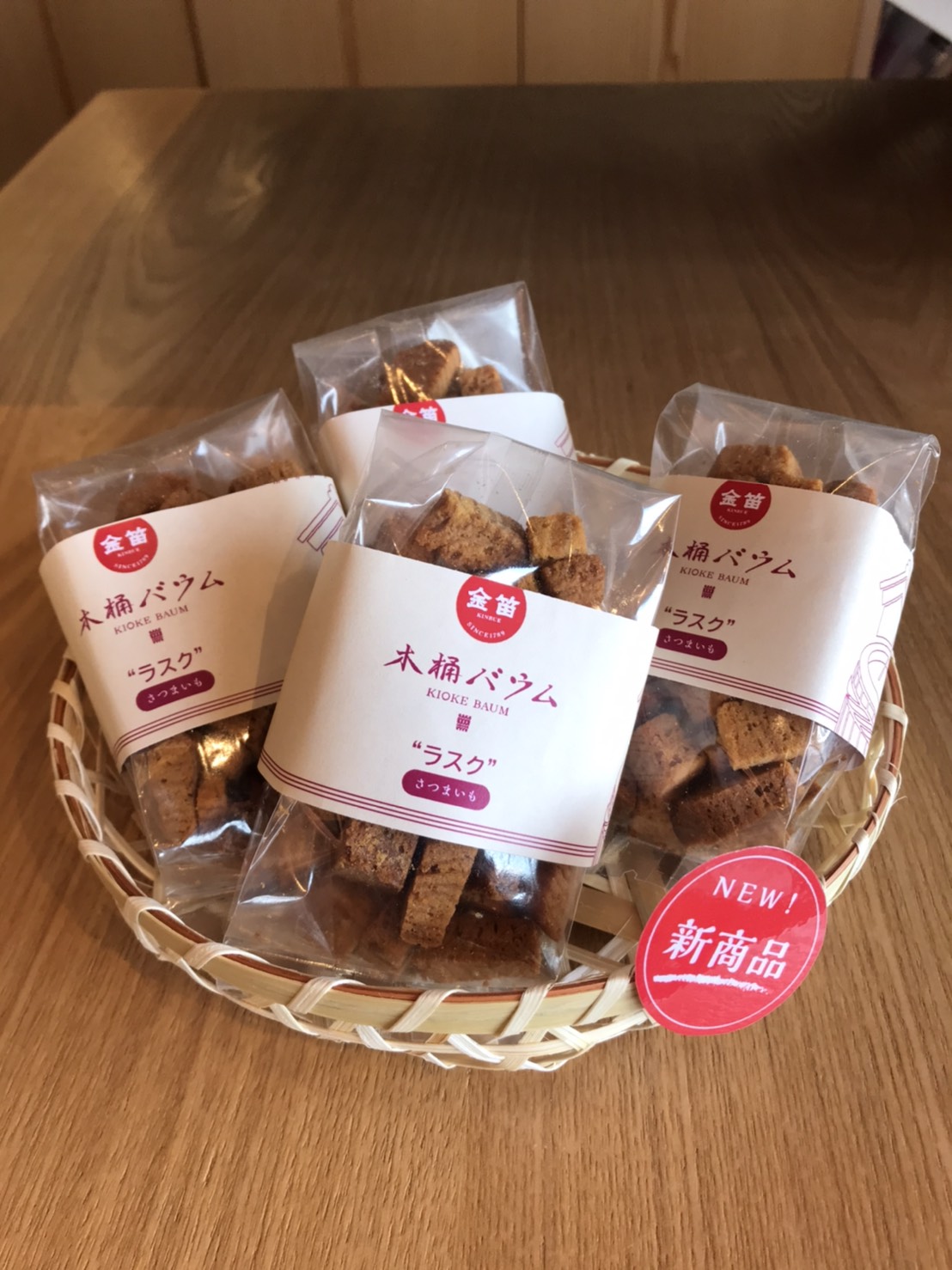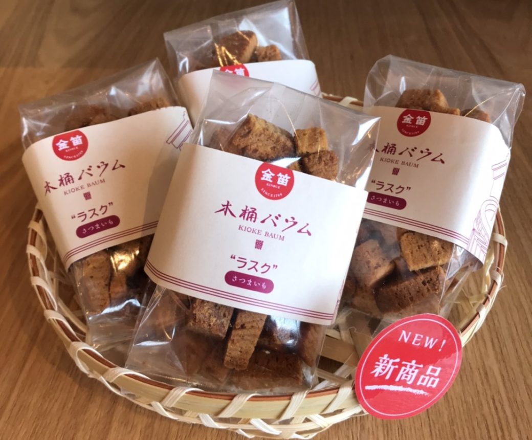 そのバウムをひとくちサイズでかりっと焼き上げた「サツマイモバウムラスク」。