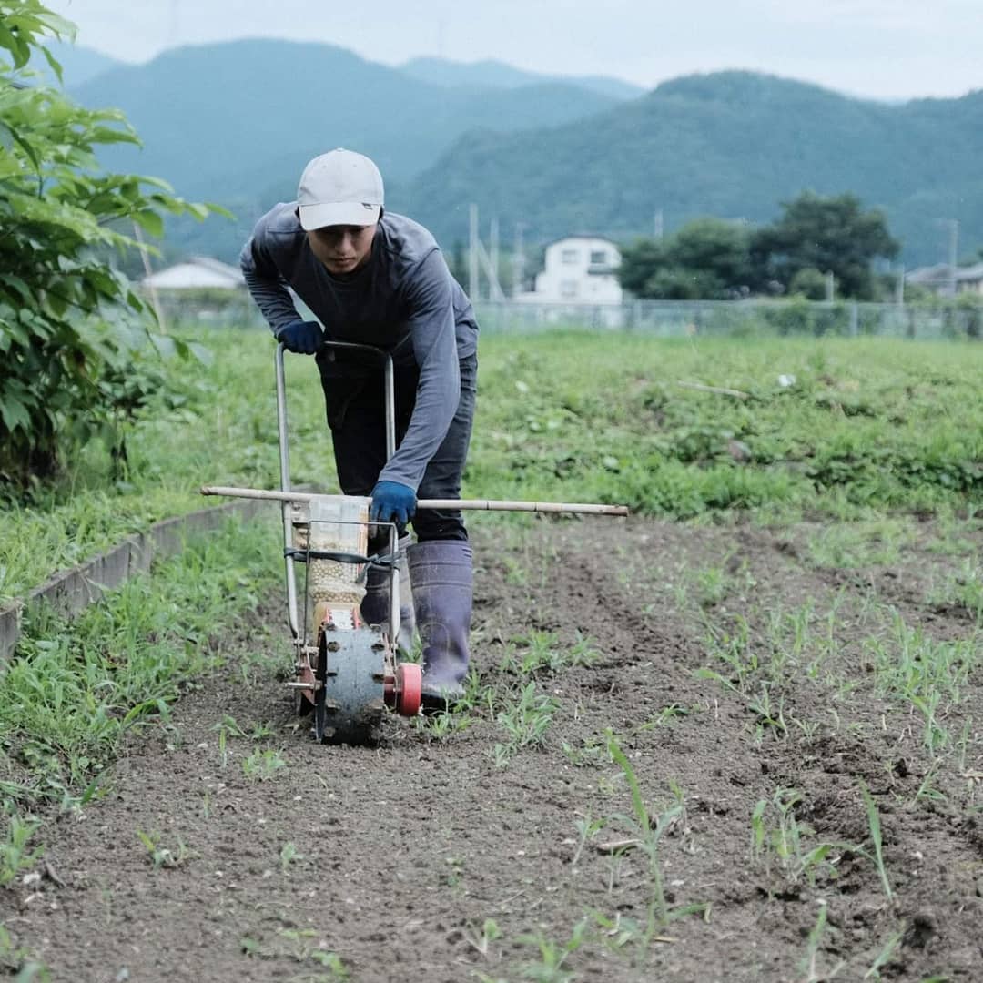 これは「木桶初しぼり」に使用している青山在来大豆の種蒔き風景。