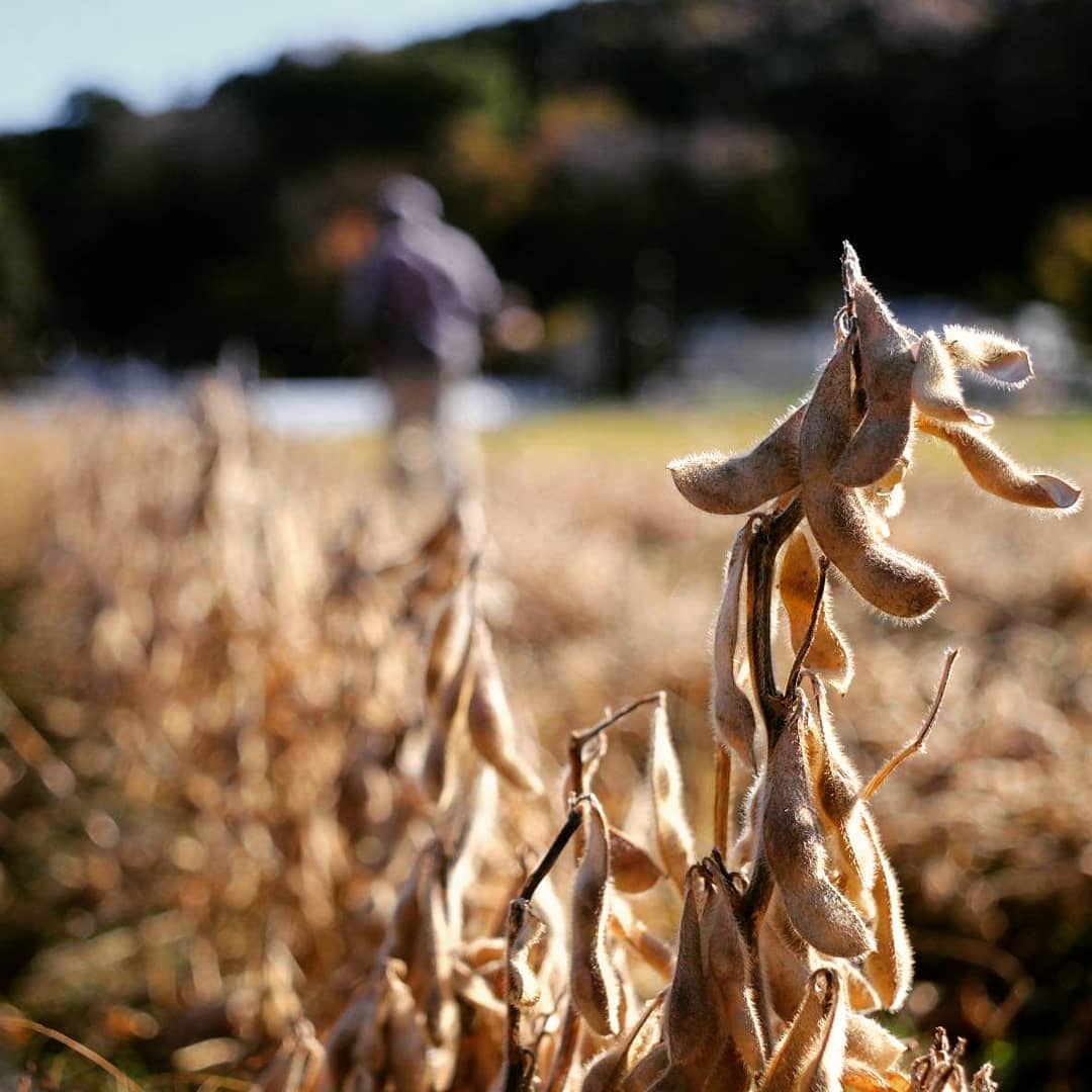 今年は豊作とのことで、黄金色に輝く大豆の写真を 横田農場 さんからいただきました。