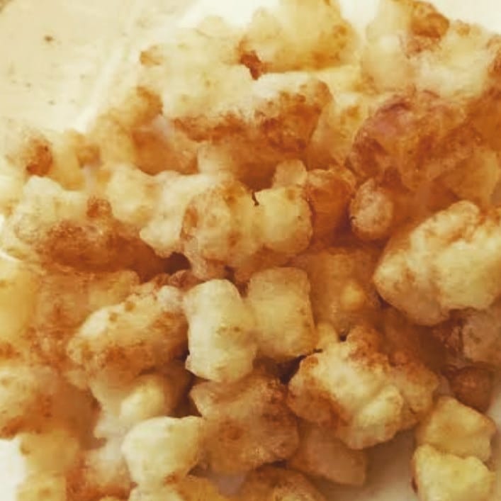 少し固くなってしまったお餅は小さく割って干し、揚げるとおかきになります。