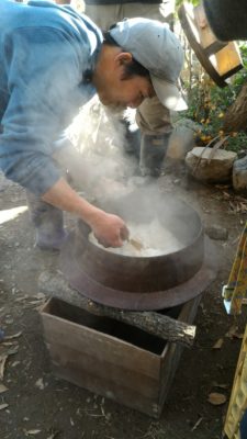 収穫の後は、横田農場さんの大きな羽釜ごはんと、金笛特製の角煮など美味しいランチも待ってますよ。