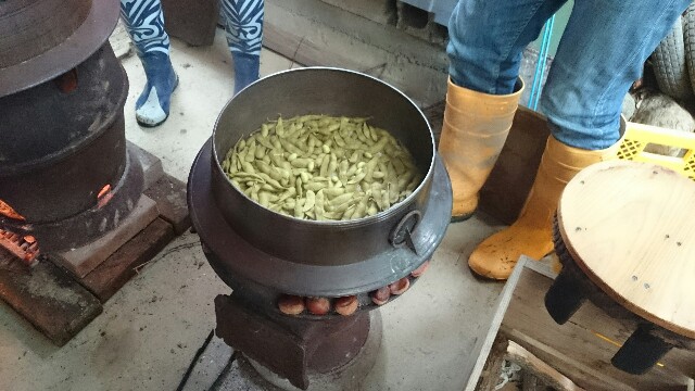 収穫した枝豆をその場で茹でて食べたのですが、本当に甘くて美味しかったです!