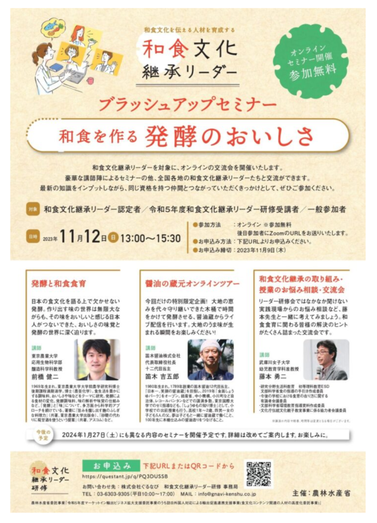 農水省セミナー「和食を作る発酵のおいしさ」に登壇します!