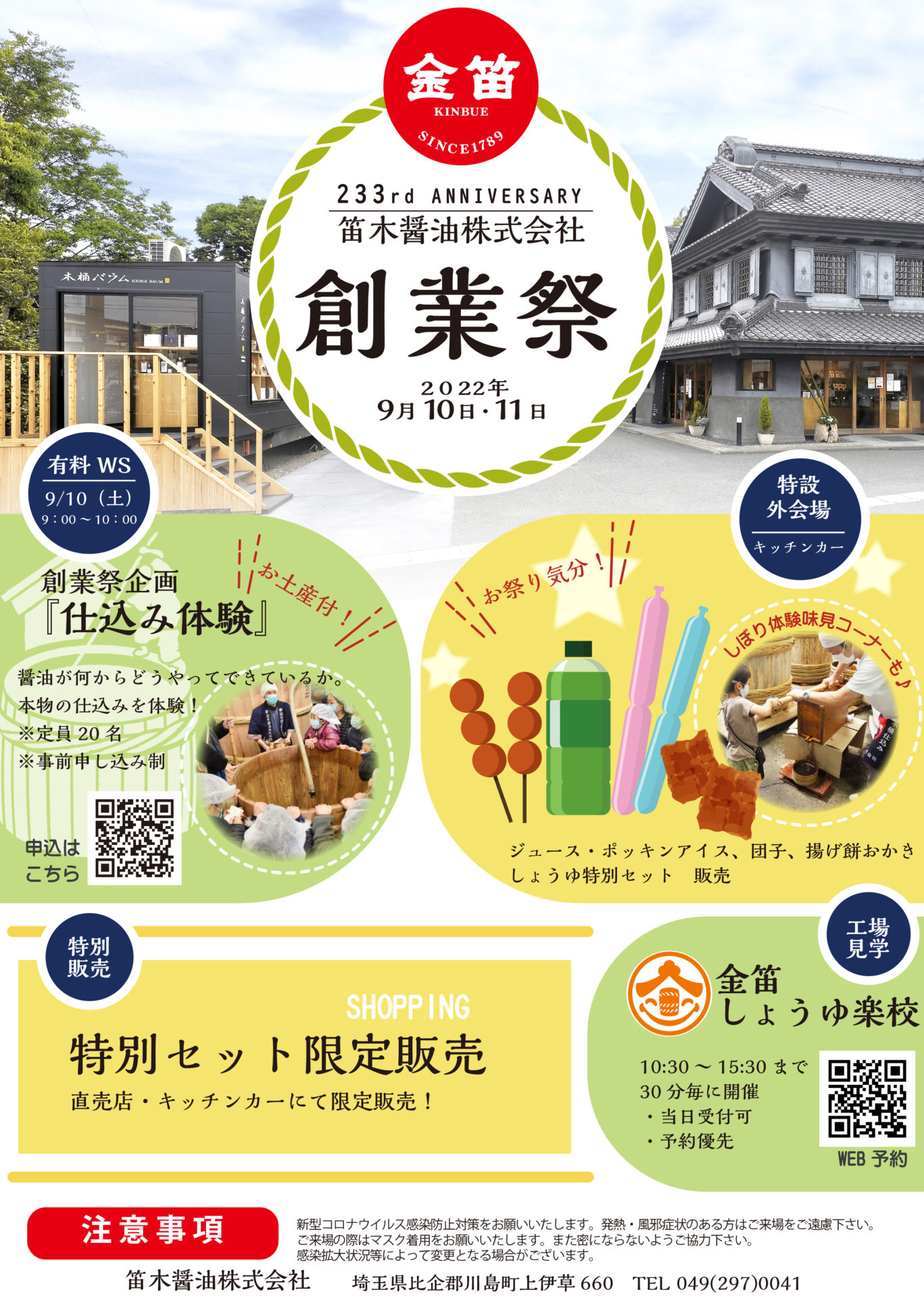 9月10日(土)11日(日)は笛木醤油創業祭です!!
