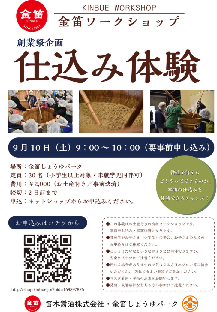 本物の仕込みを体験できちゃうチャンスです!工場見学経験者もぜひ、よりディープな醤油の世界をのぞいてくださいね!!