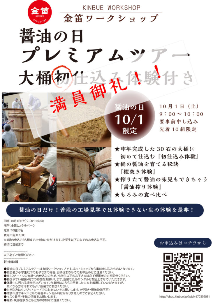 ★醤油の日プレミアムツアー 大桶初仕込み体験付き 満員御礼!締切となりました