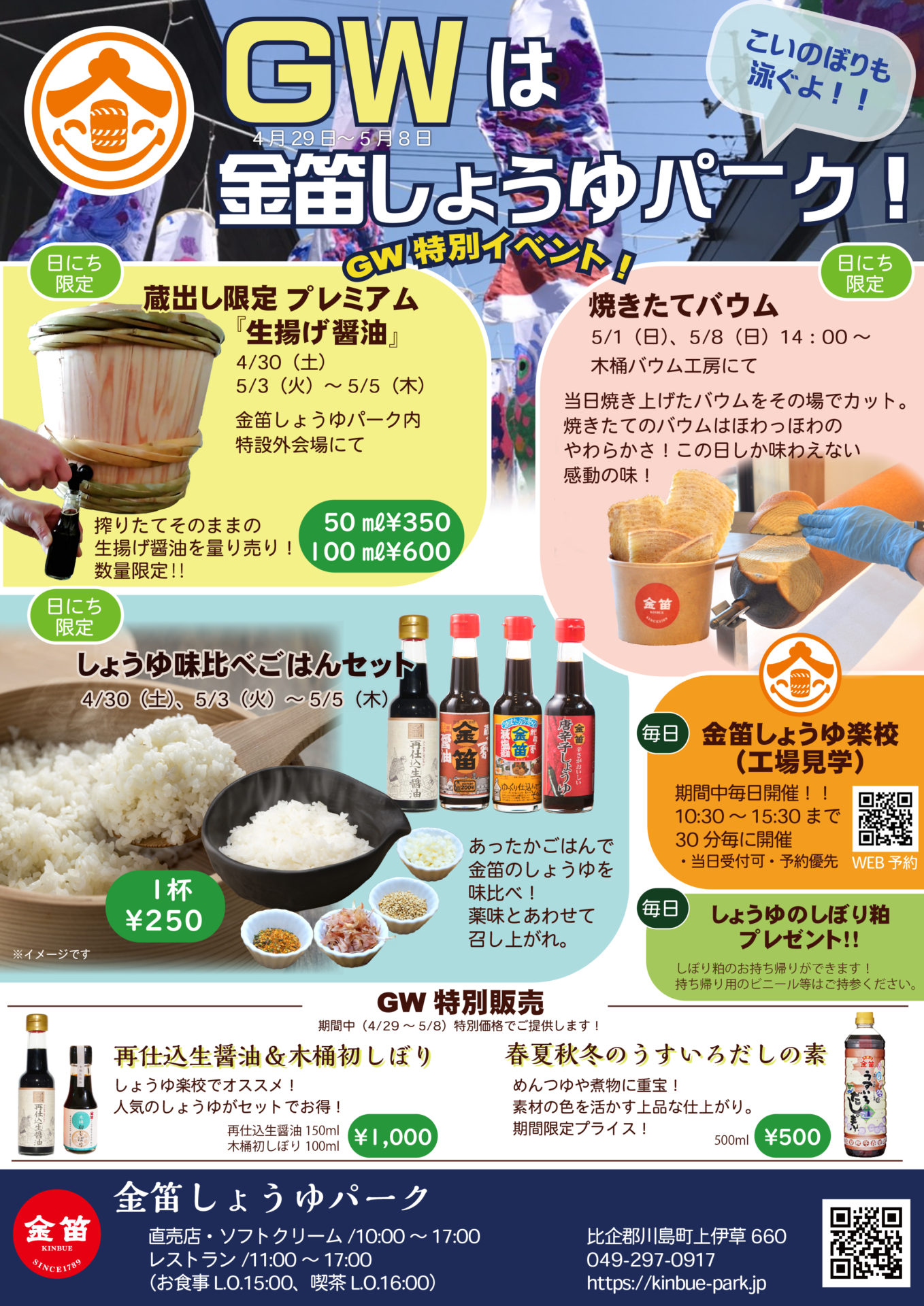 連休はぜひ金笛しょうゆパークにおでかけください!!