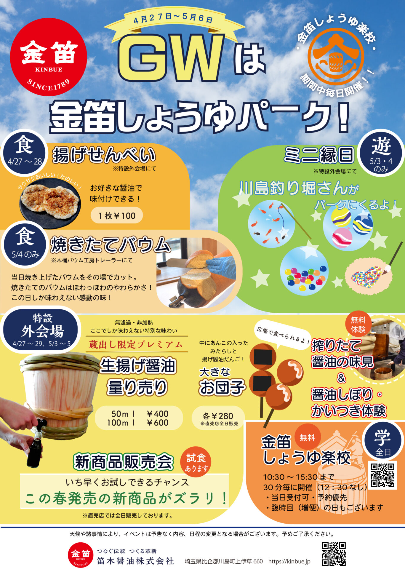 ぜひGWは金笛しょうゆパークへお越しくださいね!