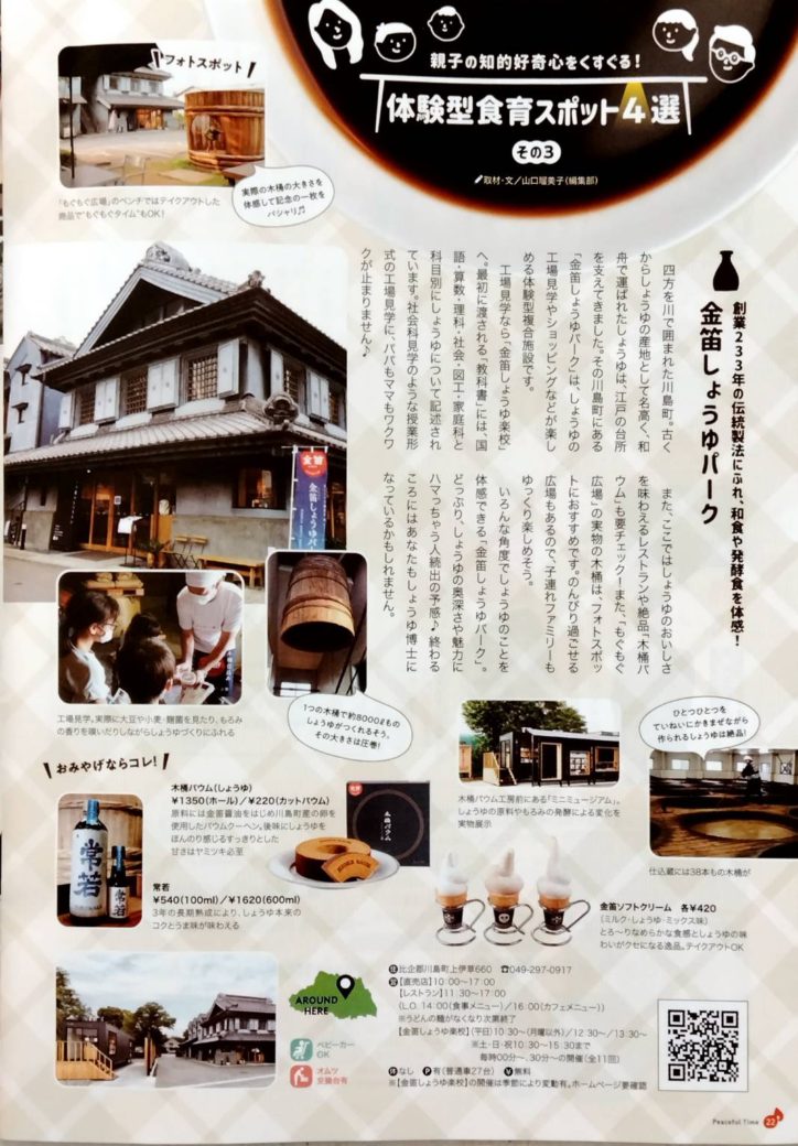埼玉の情報誌『ピースな時間』に金笛しょうゆパーク掲載されました!