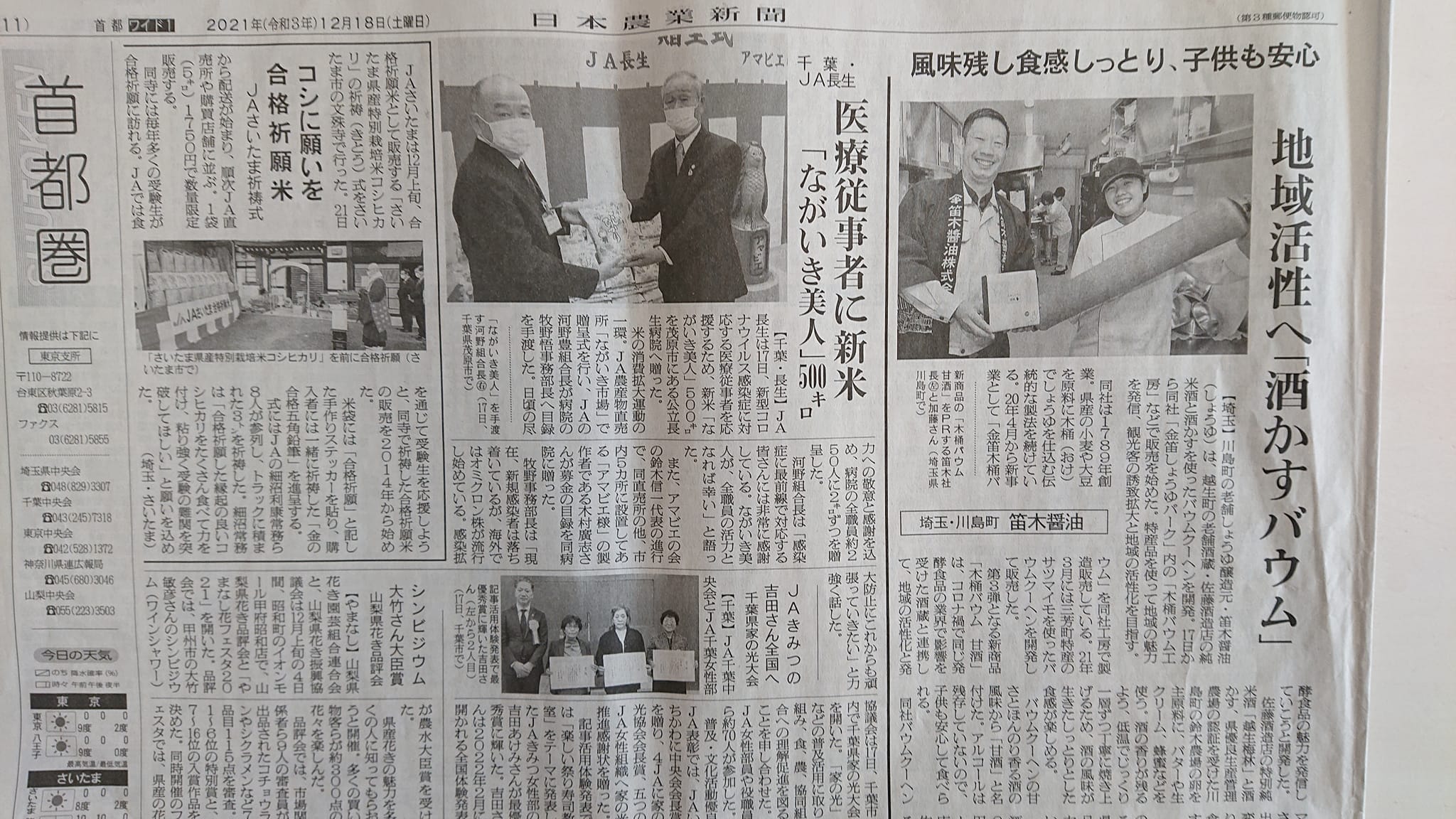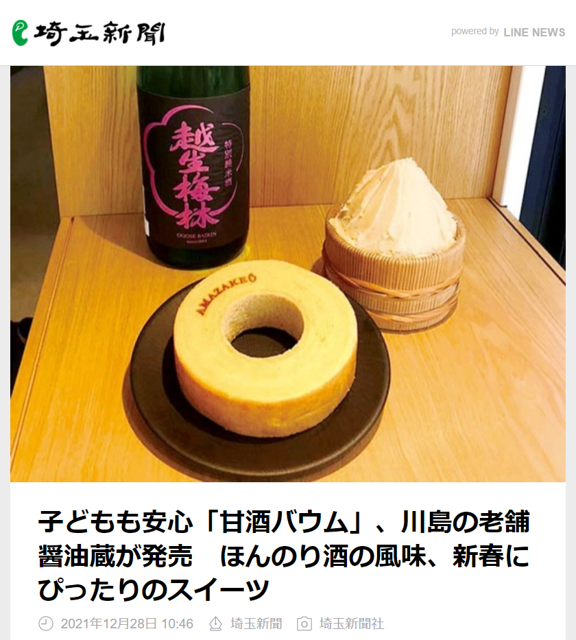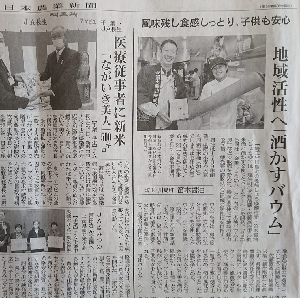 日本農業新聞に佐藤酒造さんの酒粕とお酒を使った『木桶バウム 甘酒』が紹介されました!