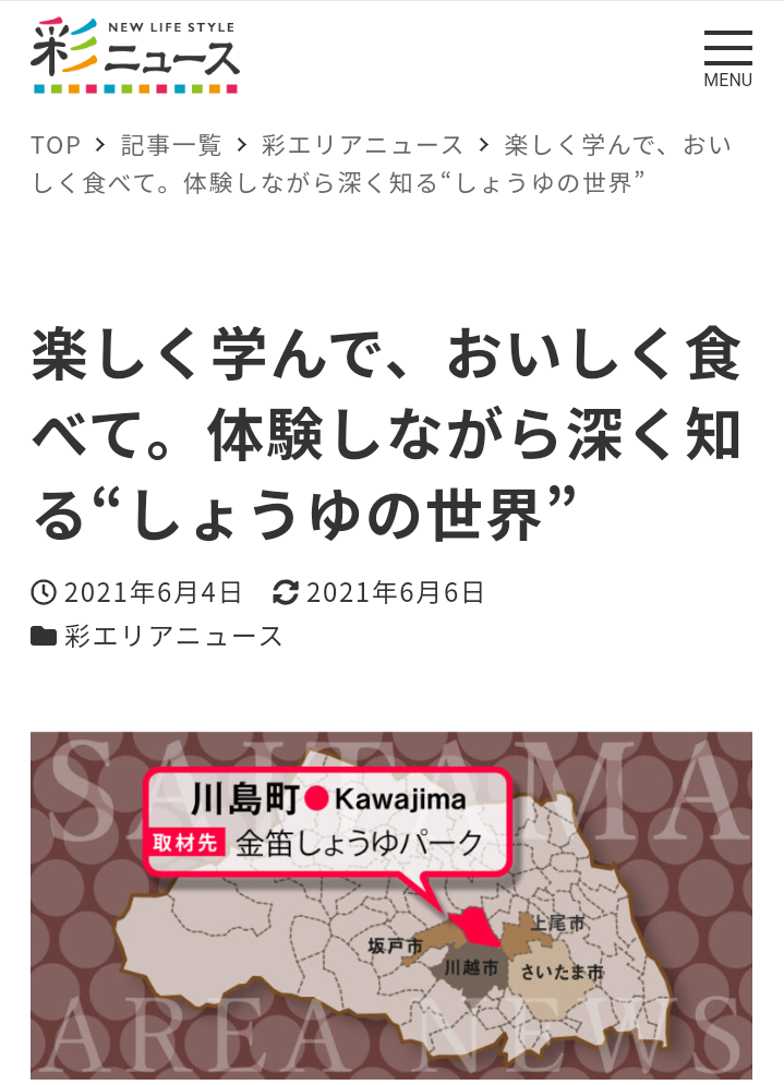 記事はコチラ→楽しく学んで、おいしく食べて。体験しながら深く知る“しょうゆの世界” | 彩ニュース (sai-news.com)