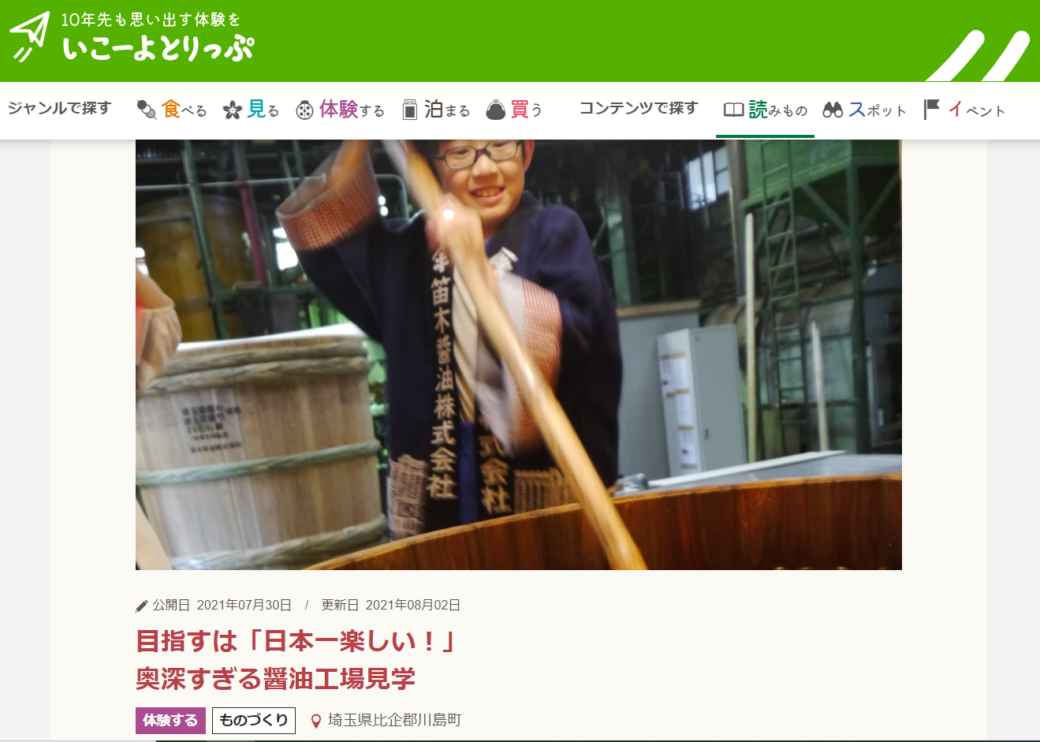 地域の個性を親子に届ける体験情報「いこーよとりっぷ」に金笛しょうゆぱーくが掲載されました!
