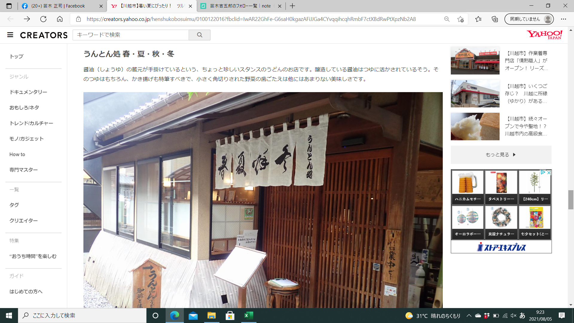 Yahoo!JAPANのCREATORS「暑い夏にぴったり!ツルリと食べられる川越市街の美味しいうどん屋3選」で、醤油の蔵元がつくるうどんとして紹介されました!