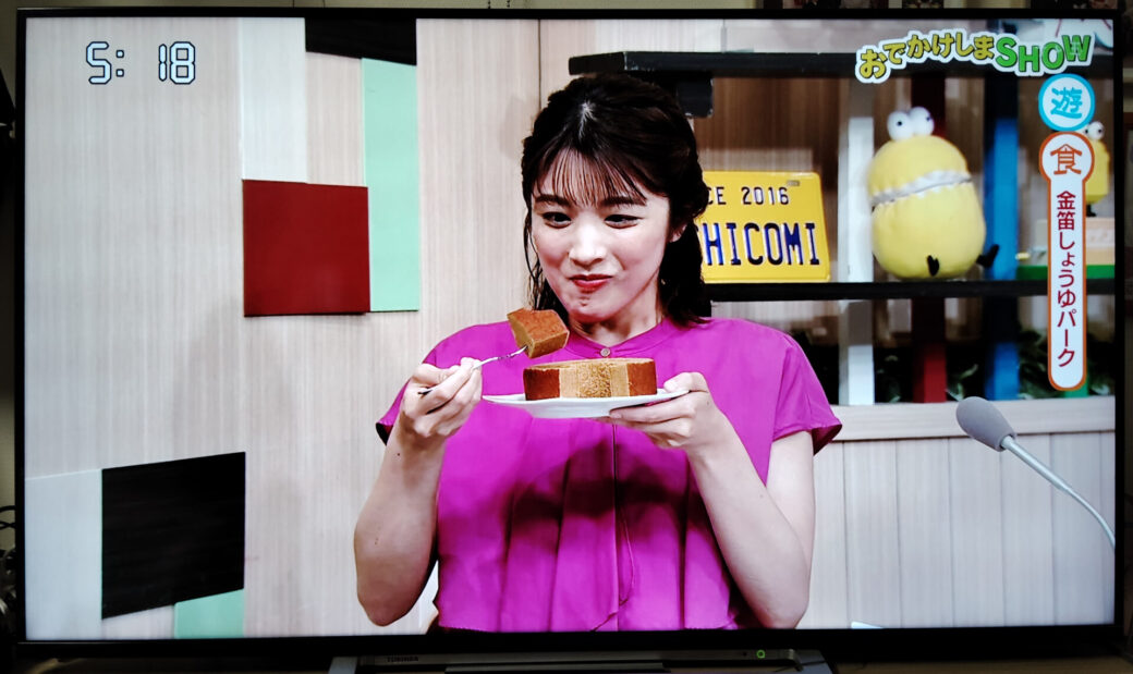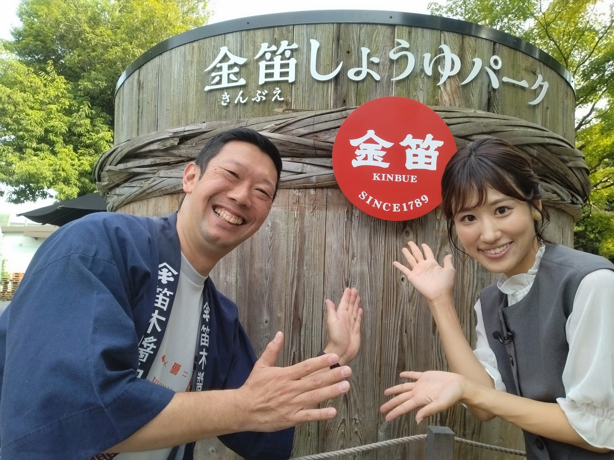 7万人が訪れる人気の観光スポットとして【しょうゆパーク】が紹介され、バウムクーヘン、フォトスポット、かいつき体験を生中継で宮崎アナウンサーとやらせて頂きました!