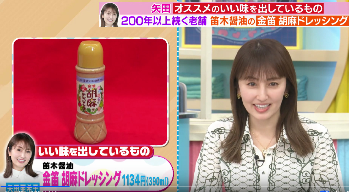 矢田亜希子さんご愛用【金笛胡麻ドレッシング】、MCの川島さんからも「ゴマ感が本当にあって美味しい」とおっしゃって頂きました!