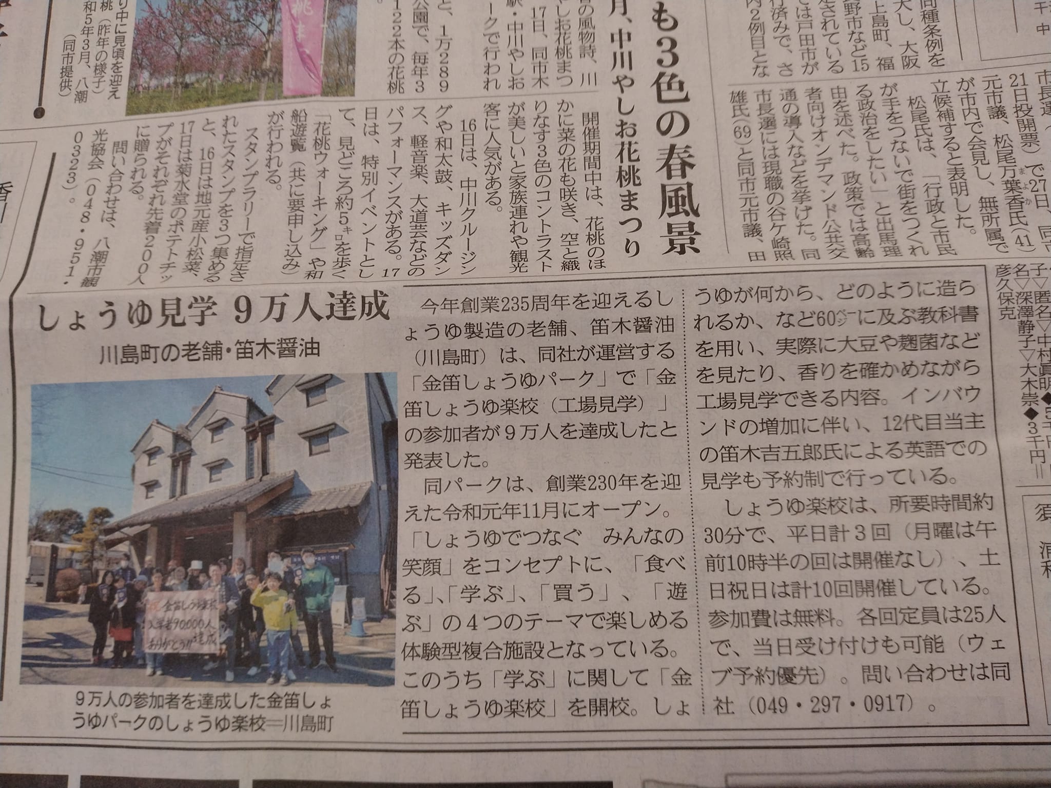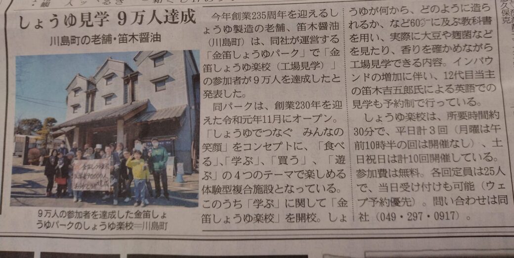 2月28日の産経新聞に金笛しょうゆ楽校入学者90000人達成を取り上げていただきました!!