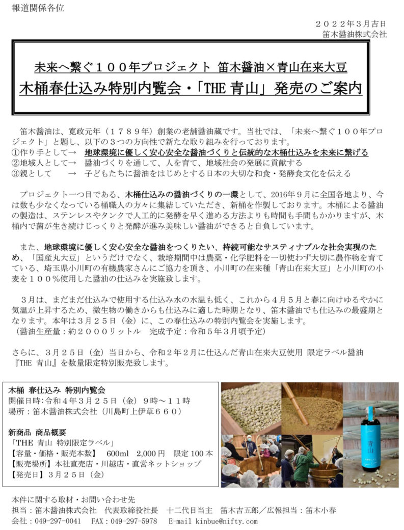 【プレスリリース】木桶春仕込み特別内覧会・「THE青山」発売のご案内